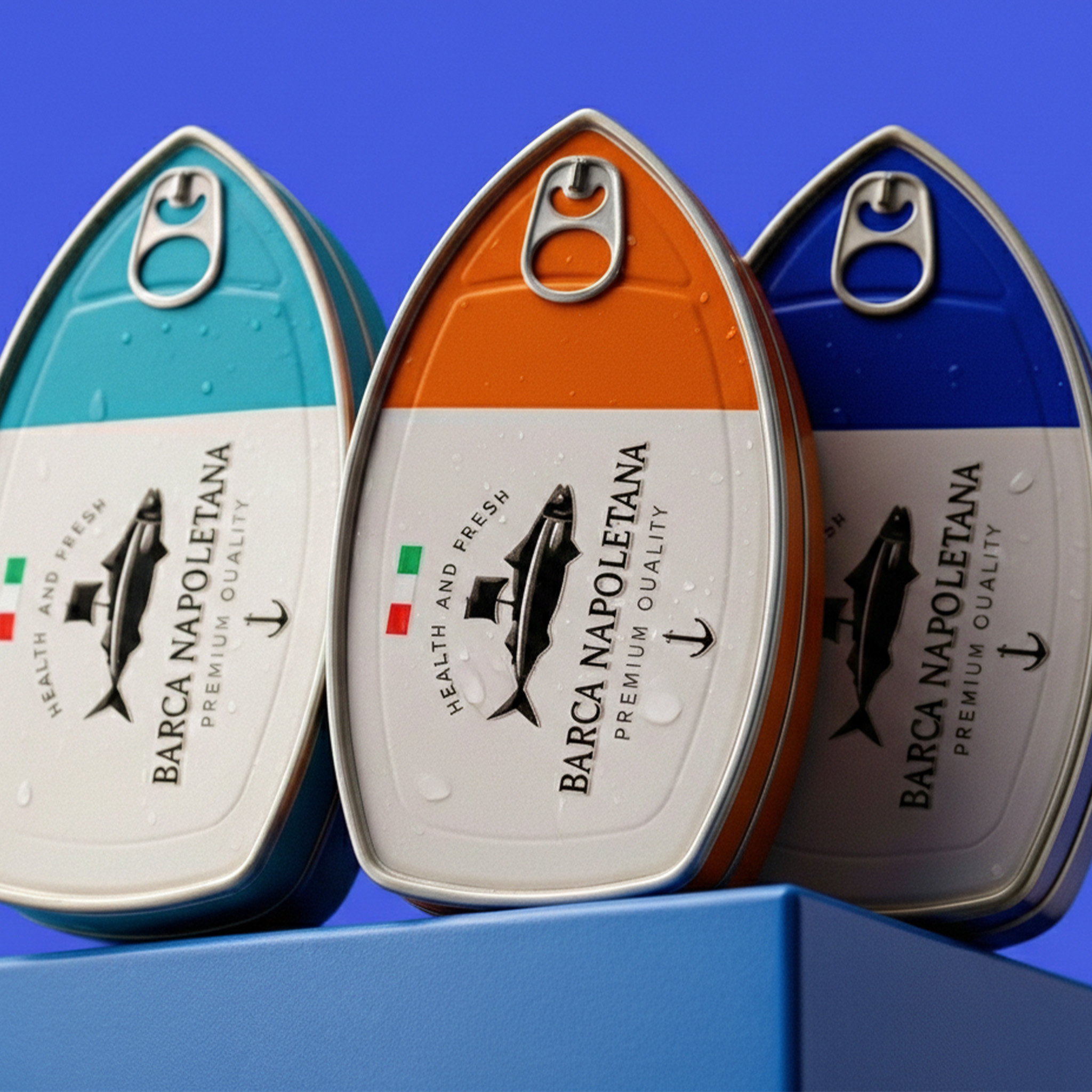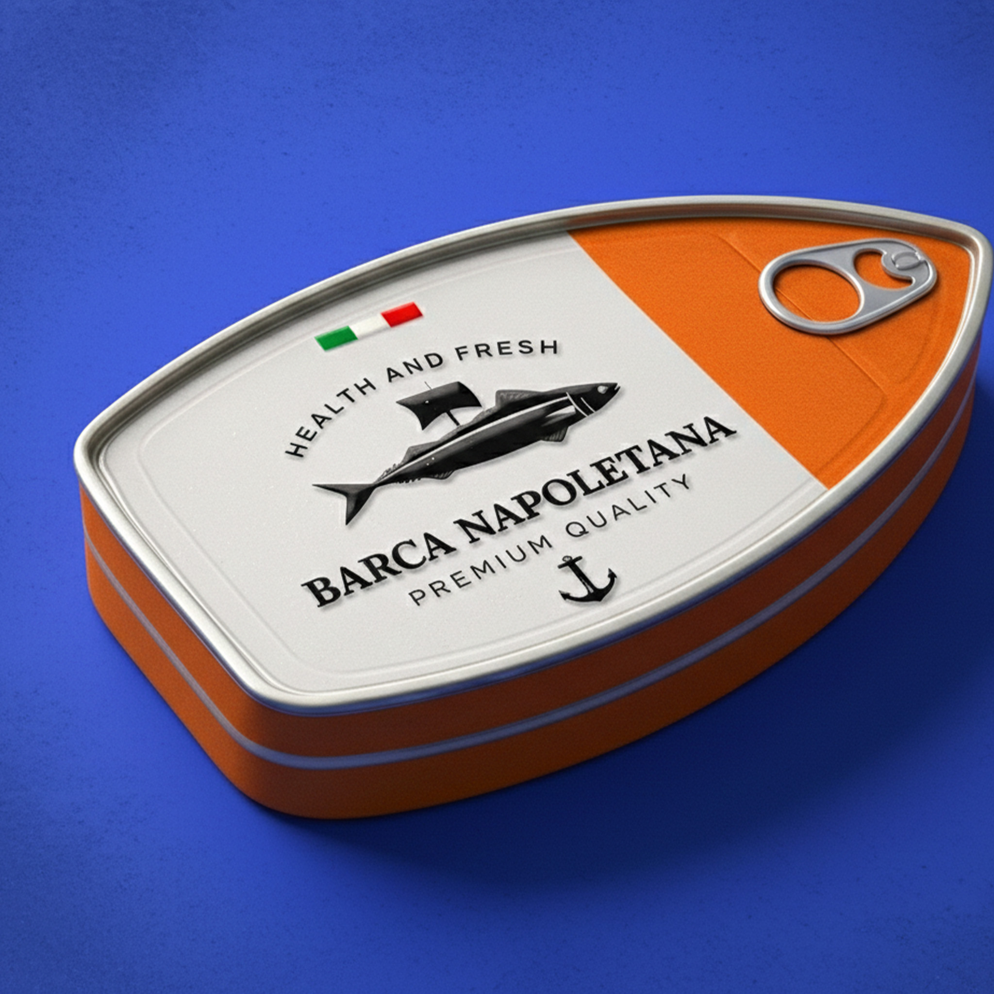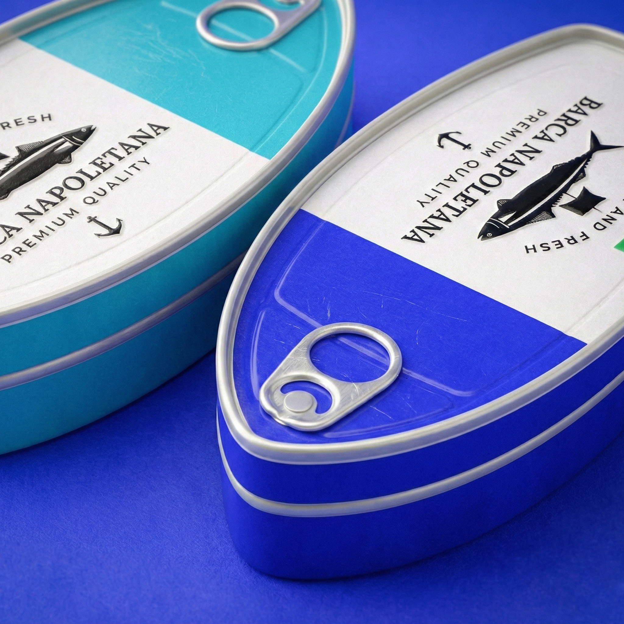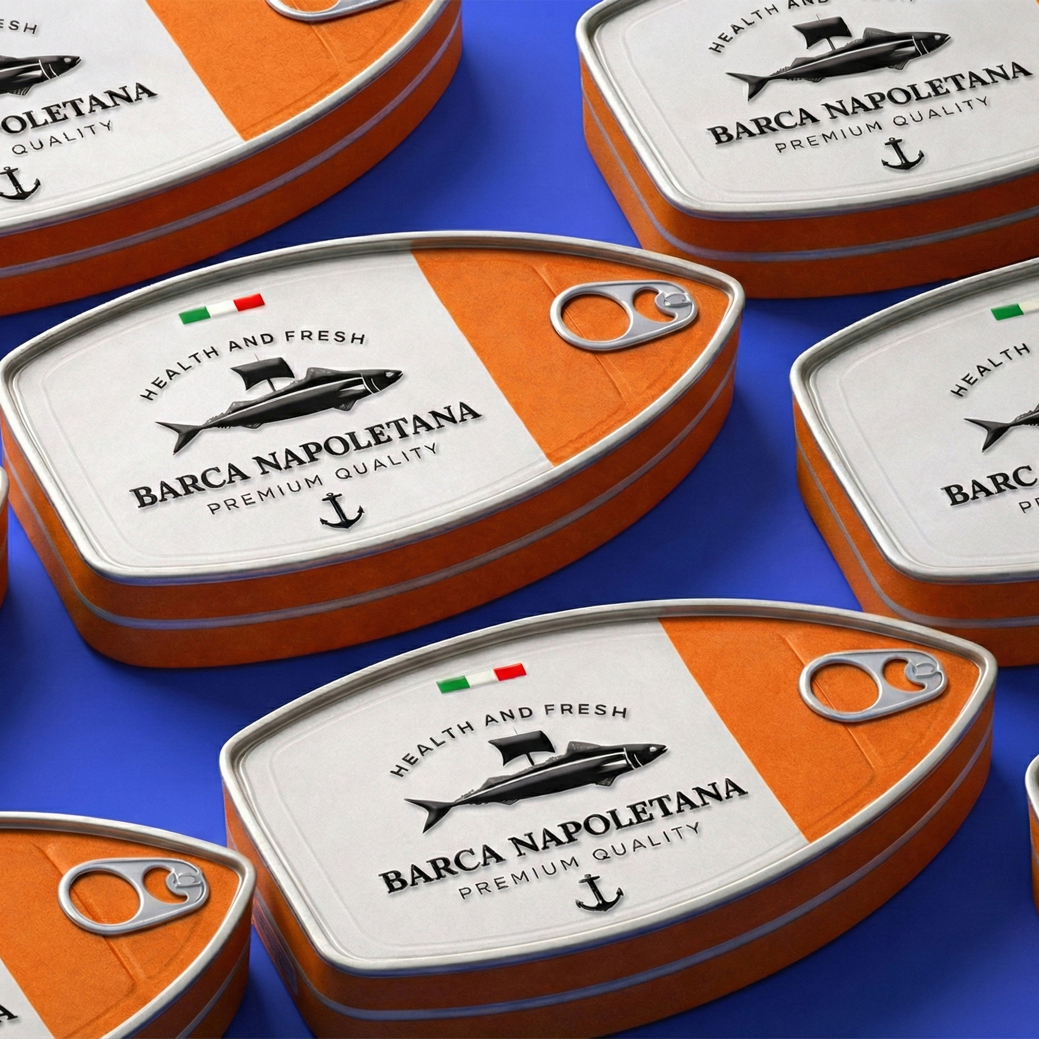 Упаковка консервированной рыбы «BARCA NAPOLETANA» от Atyan Design основана на четкой идее: море, путешествия и итальянское качество. С первого взгляда привлекает внимание уникальная форма: упаковка напоминает очертания лодки, что создает прямую связь с названием бренда («Barca» – лодка) и морскими корнями.