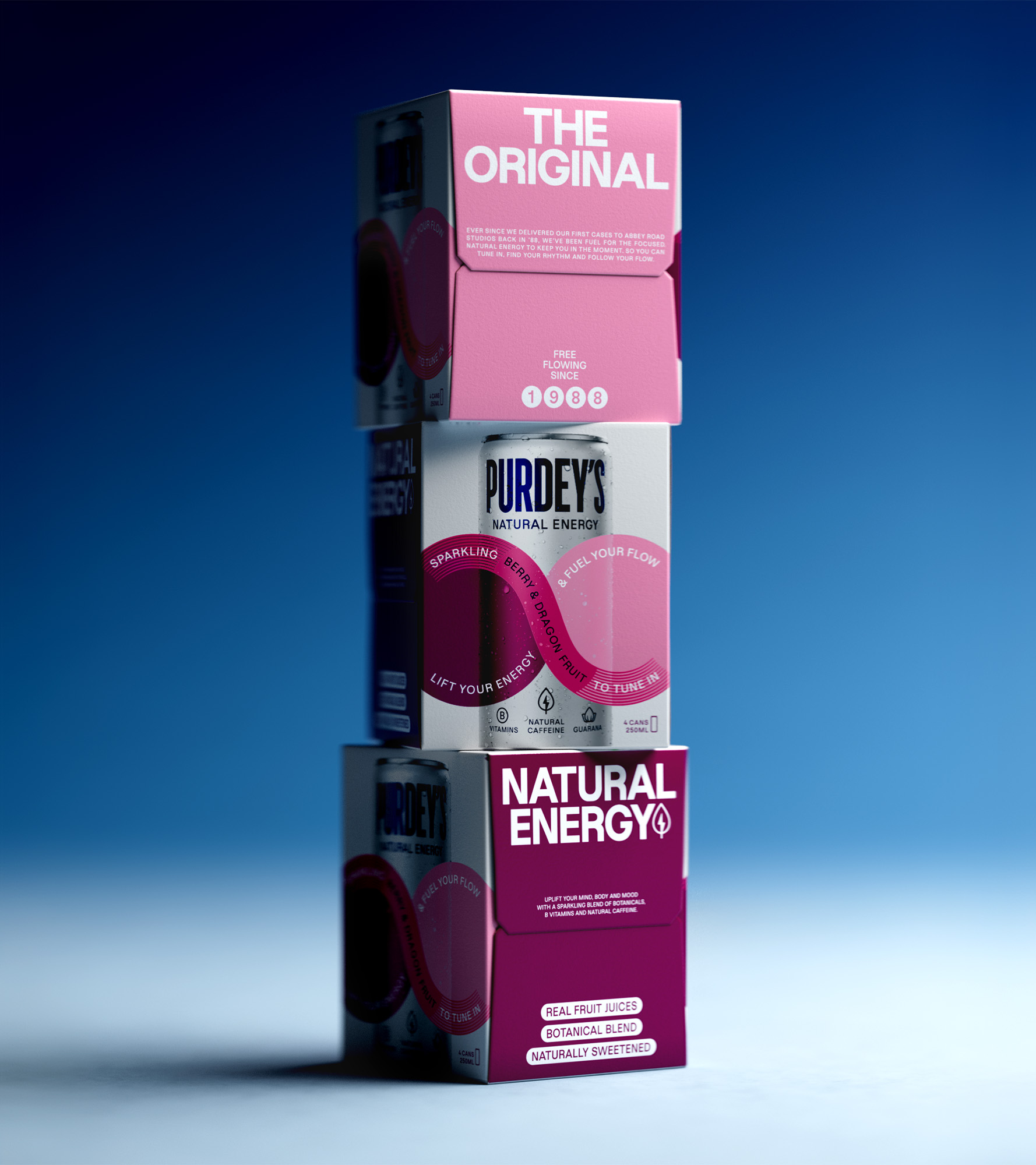 Когда Purdey’s вышел на рынок в 1988 году, бренд стал первым натуральным энергетическим напитком в Великобритании. Спустя десятилетия агентство Magpie переосмыслило его визуальный язык, предложив новую систему идентичности и упаковки, основанную на идее непрерывного творческого потока.