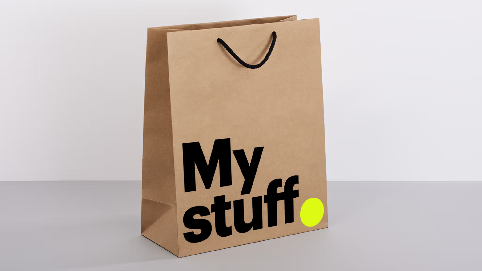 Черно-бело-желтая цветовая палитра проходит через всю систему идентичности. Ее поддерживает нейтральный крафтовый оттенок, вдохновленный простыми природными материалами повседневной жизни. Такой прием противопоставляет бренд избыточно «технологичным» визуальным языкам, которые сегодня доминируют в цифровой среде. Крафтовый тон используется в фонах, добавляя теплоту и тактильность — отсылка к миру повседневных доставок и коробок с базовыми решениями для повседневных задач. Желтый цвет работает как визуальный знак препинания: он акцентирует внимание и подчеркивает уверенность бренда, который говорит прямо и по делу.