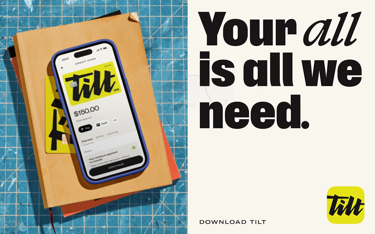 Агентство Ragged Edge разработало новую айдентику Tilt — кредитной системы, ориентированной на справедливость и поддержку пользователей. В основе бренда — отказ от оценки прошлого в пользу потенциала человека, что напрямую отражено в визуальном языке.
