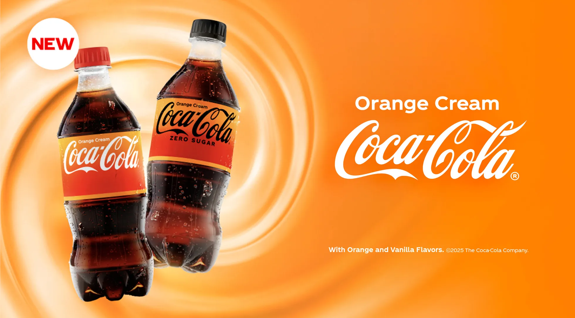Компания Coca-Cola представила в США и Канаде совершенно новый вкус: напиток Coca-Cola Orange Cream, доступный как в формате с высоким содержанием сахара, так и в формате без сахара.