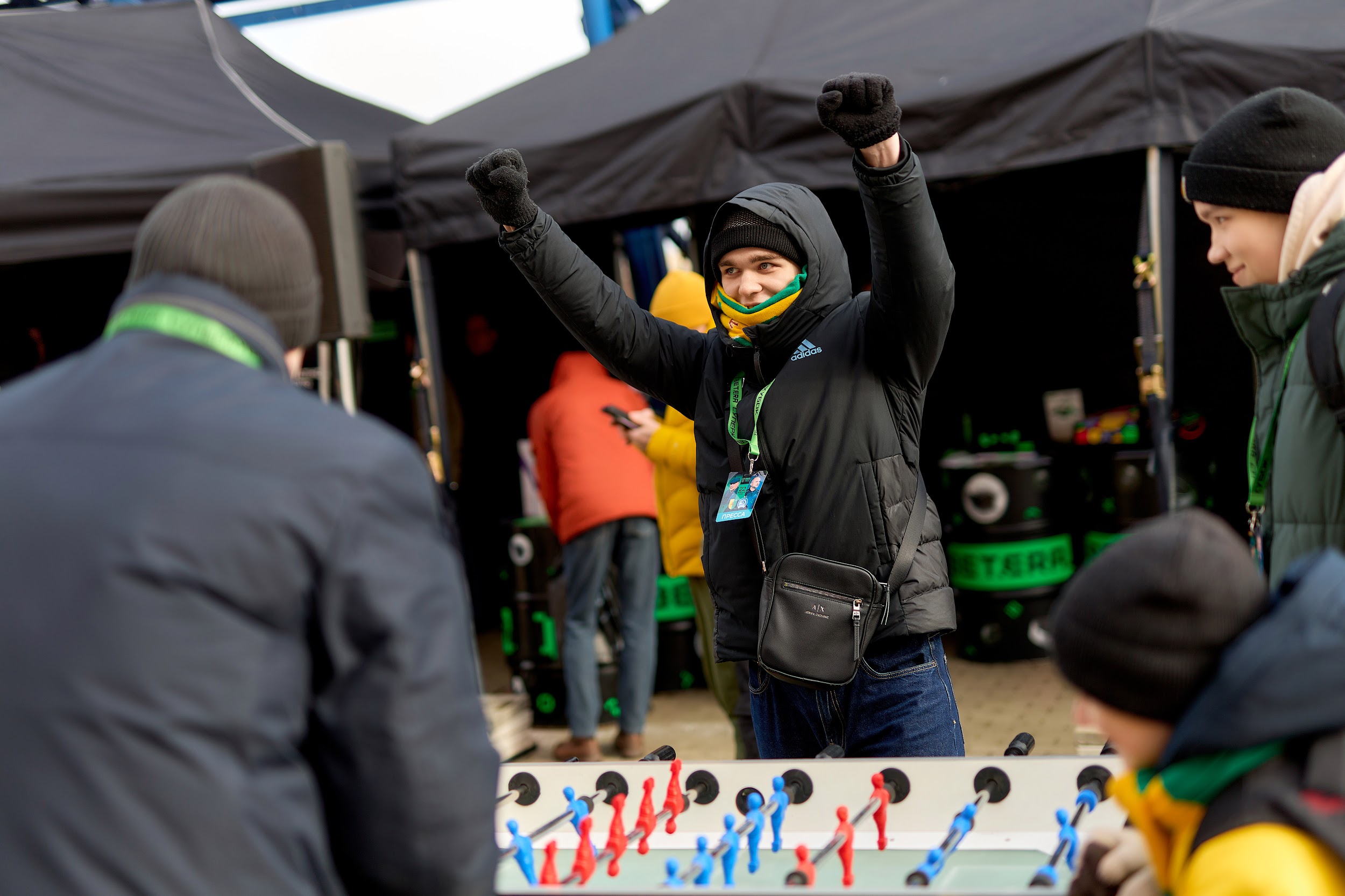 Встреча собрала почти 3 тысячи человек на трибунах стадиона ФК “Минск”. Игру посетили как футбольные болельщики и специалисты, в том числе тренерский штаб национальной сборной Беларуси во главе с Карлосом Алосом, так и популярные блогеры, среди которых британец Уилл Эггертон, принявший приглашение Betera — несмотря на “минус” по шкале Цельсия, он пришел на матч в шортах, что является его фирменной “фишкой”.