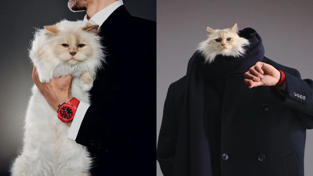 Кошка Шупетт, принадлежавшая покойному дизайнеру Карлу Лагерфельду, стала центральным образом новой кампании Hublot, приуроченной к 20-летию флагманской коллекции часов Big Bang.
