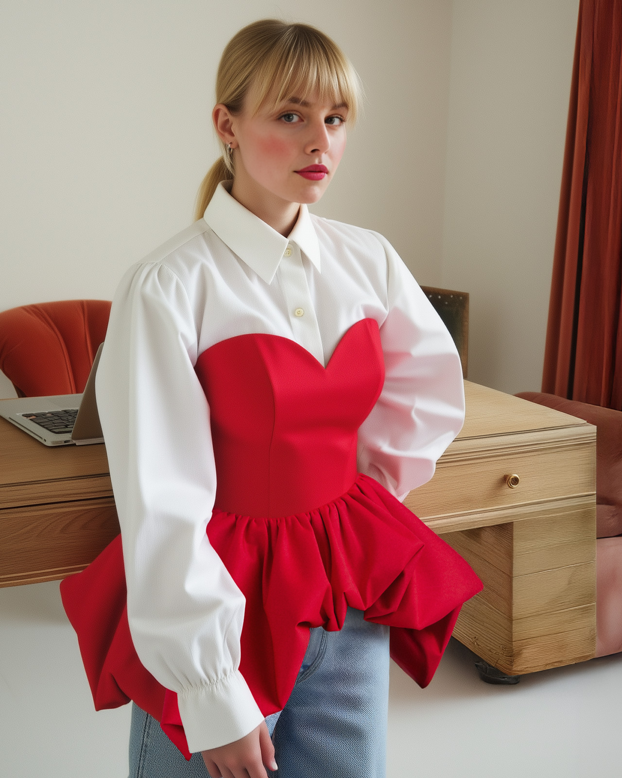 Быть в красном — значит быть заметной, смелой и по-настоящему счастливой. Именно поэтому в коллекции появились три корсета, которые отражают три разных состояния души, мысли и мироощущения, но при этом они с легкостью уживаются в одном человеке. Корсет из бархата — смелый и дерзкий. Корсет из тонкого кружева шантильи — ода нежности и утонченности. А корсет с пышной баской-баллон — про комфорт, даже если ты надела его на работу в офис».