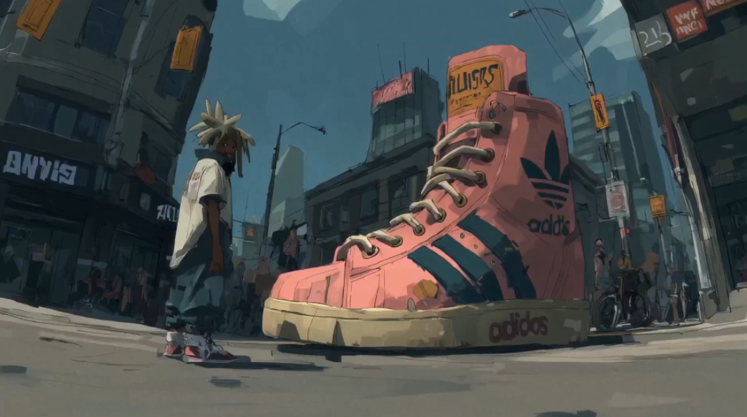 В центре внимания — ряд абстрактных и реалистичных персонажей, каждый из которых носит знаковые кроссовки Adidas. Видео строится на чередовании визуальных образов и брендированных элементов, а завершается слоганом AI, don’t stop — отсылающим как к духу инноваций, так и к ключевому инструменту производства.