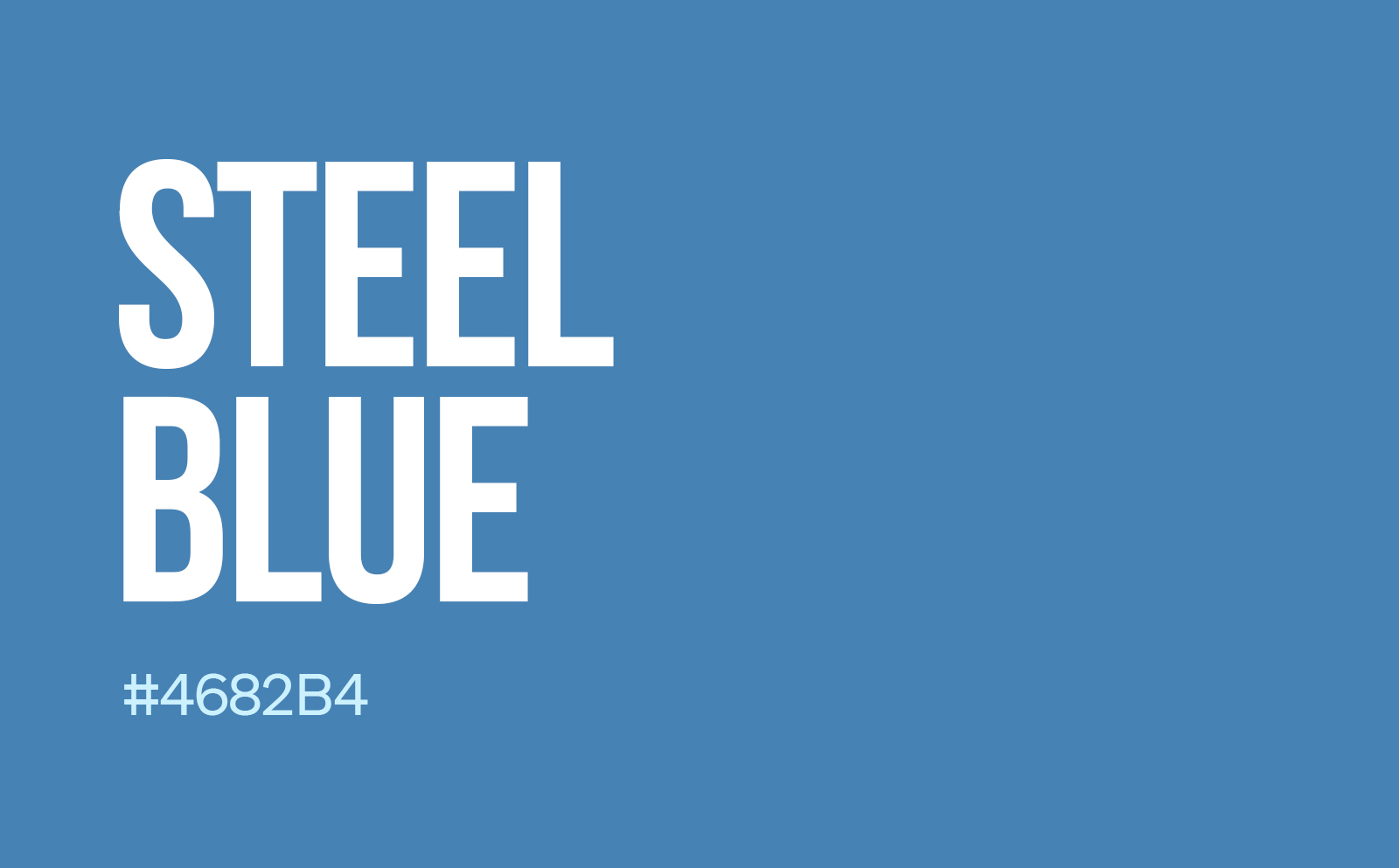 Металлический, прохладный, с едва уловимым серым подтоном. Steel Blue — это индустриальная элегантность и функциональная честность. Часто используется в минималистичных интерфейсах, когда требуется визуальное спокойствие без потери глубины.