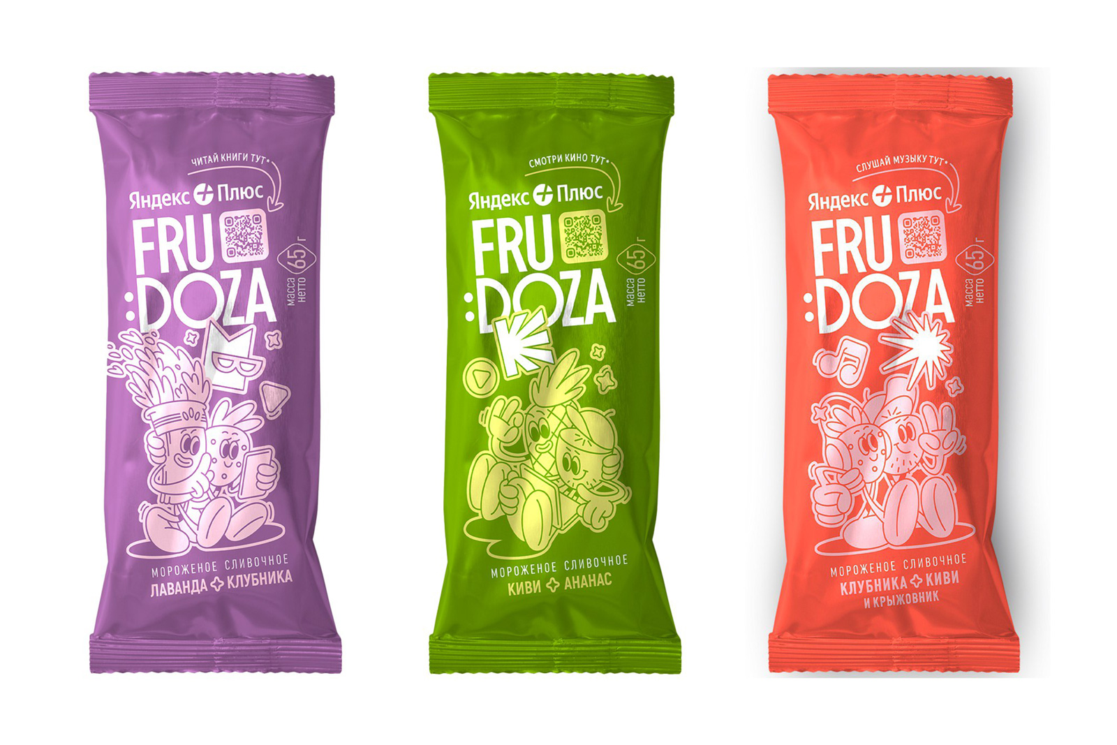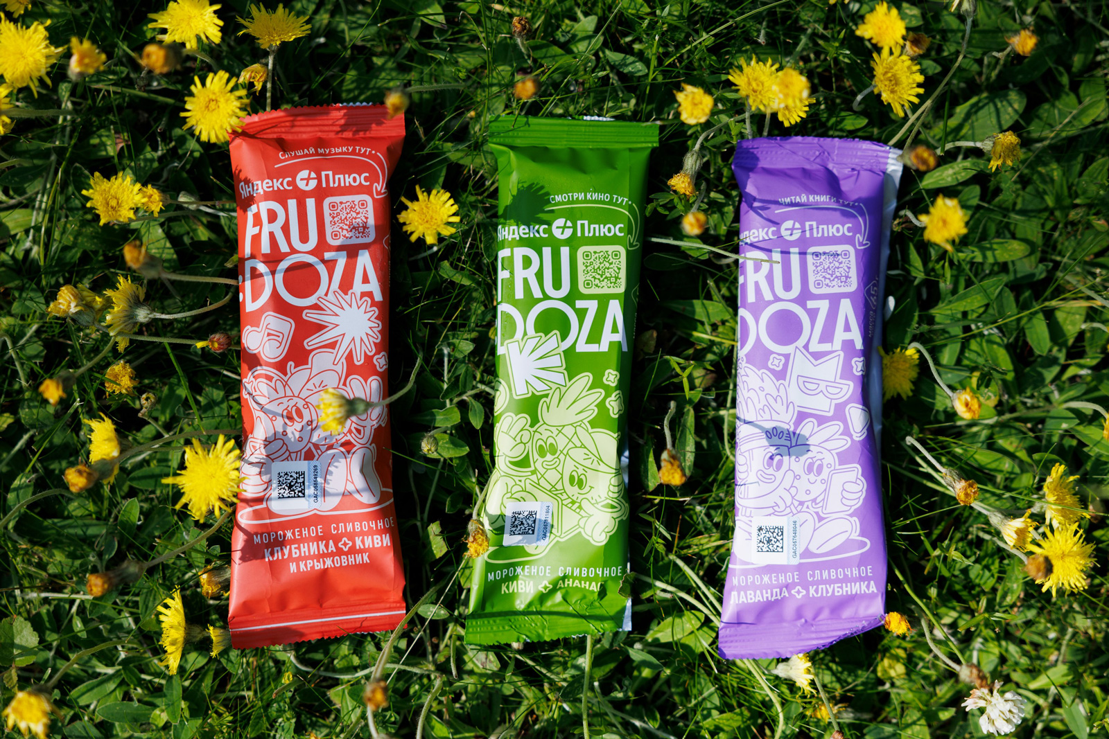 Все три новинки мороженого Frudoza получили яркие упаковки с эксклюзивным QR-кодом. Отсканировав его, можно подключить на 60 дней подписку Яндекс Плюс, куда входят Кинопоиск, Яндекс Музыка и Яндекс Книги.