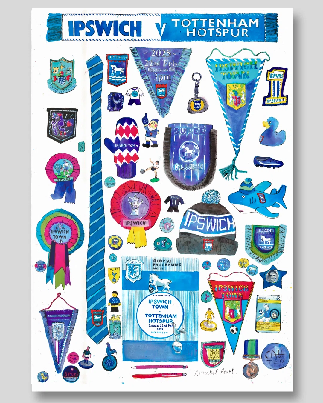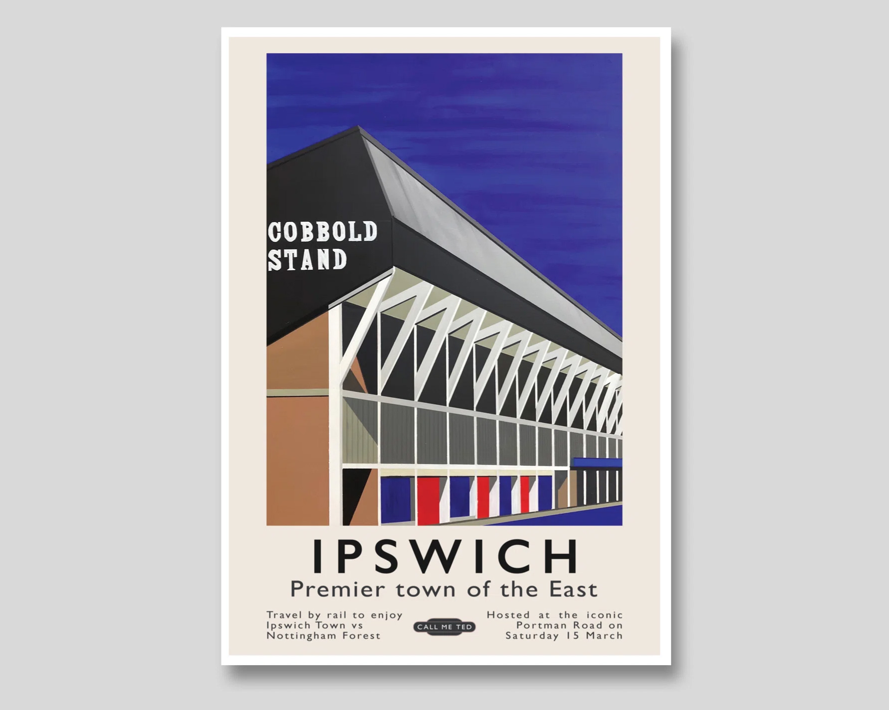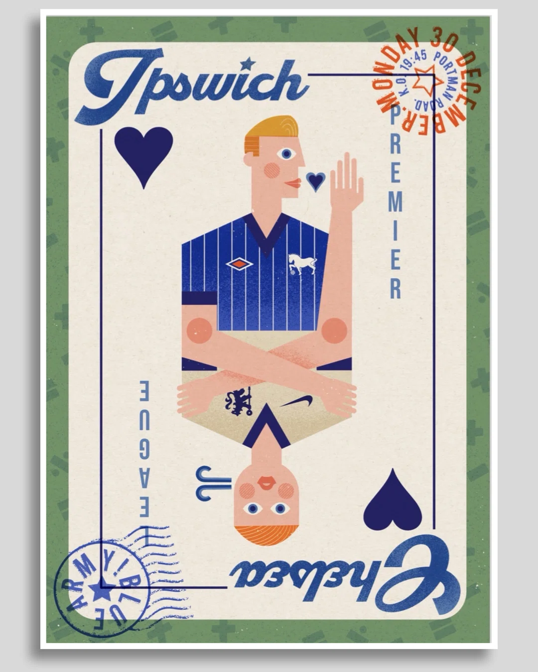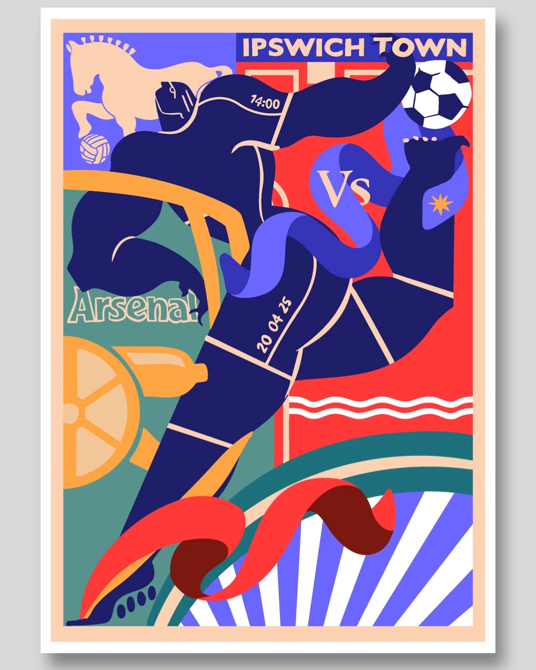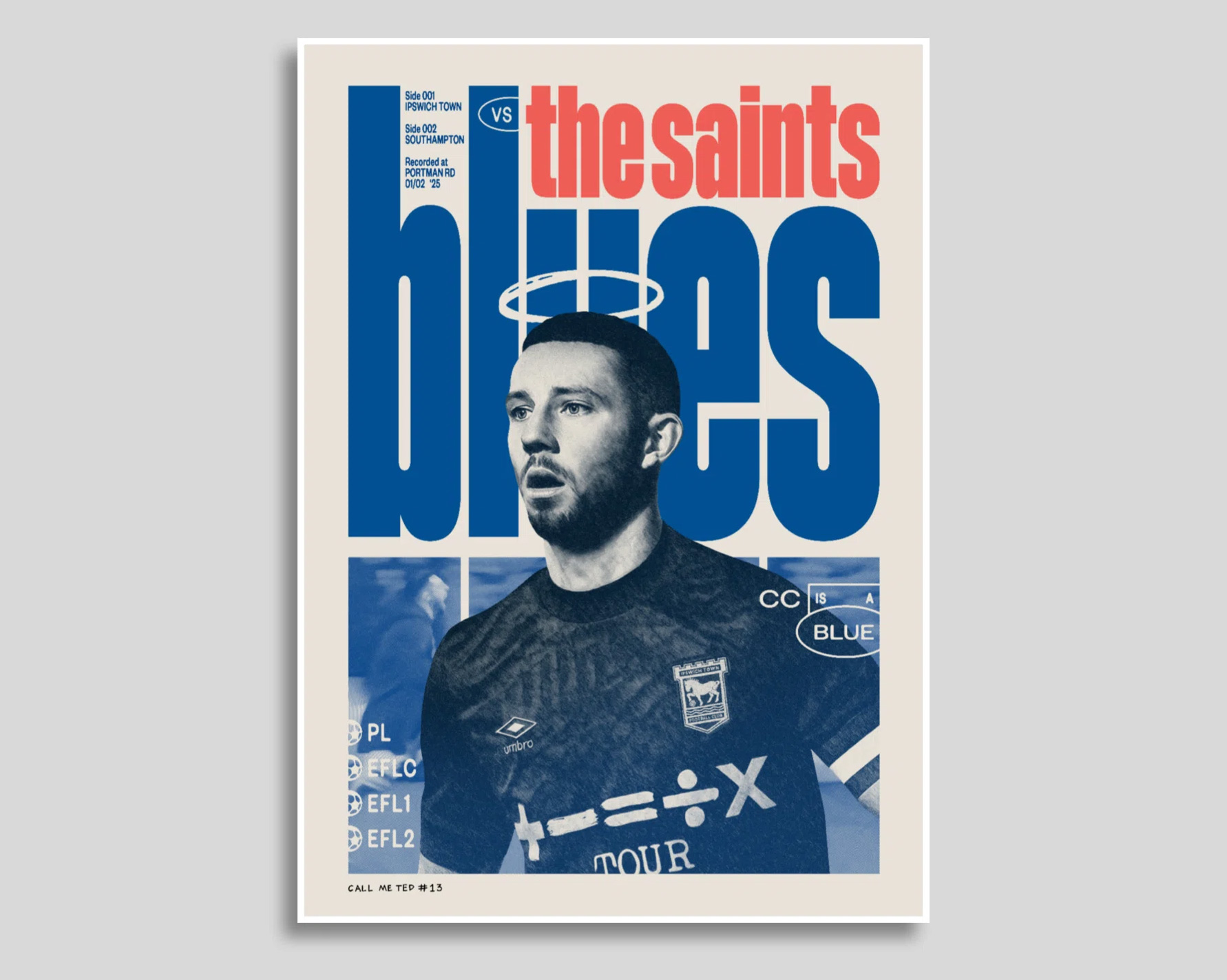Когда футбольный клуб Ipswich Town вернулся в Премьер-лигу в 2024 году, братья Стивен и Ричард Хо прошли мимо традиционного фанатского мерча — и создали визуальный манифест футбольной культуры нового типа. Под названием Call Me Ted — в честь популярной кричалки на стадионе — проект объединил 19 художников для создания уникальных постеров к каждому домашнему матчу сезона.