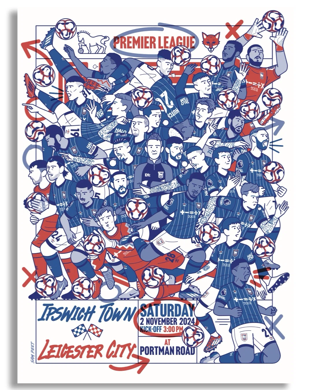 Родом из Ипсвича, Стив и Ричард в прошлом устраивали музыкальные вечеринки Up Rock и всегда создавали броские постеры к своим событиям. Возвращение родной команды в высшую лигу стало отправной точкой для новой миссии: передать атмосферу каждого матча через эстетику концертных афиш, и тем самым вдохнуть в футбольную визуальную культуру эмоцию, индивидуальность и локальную идентичность.