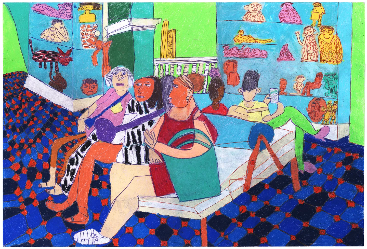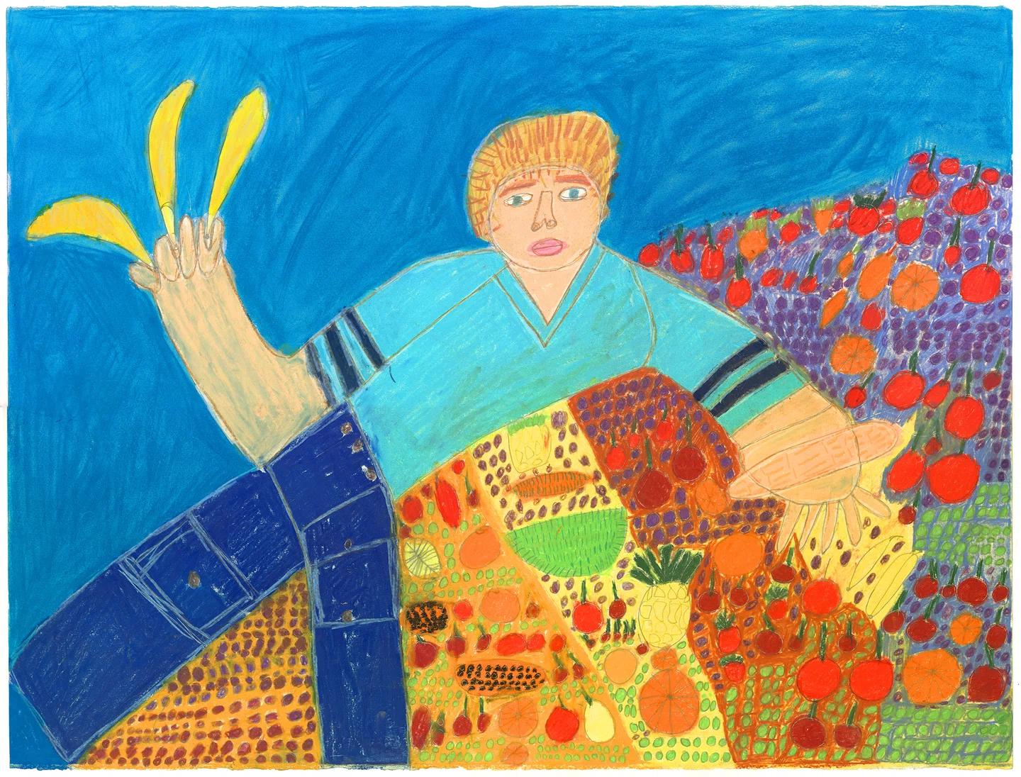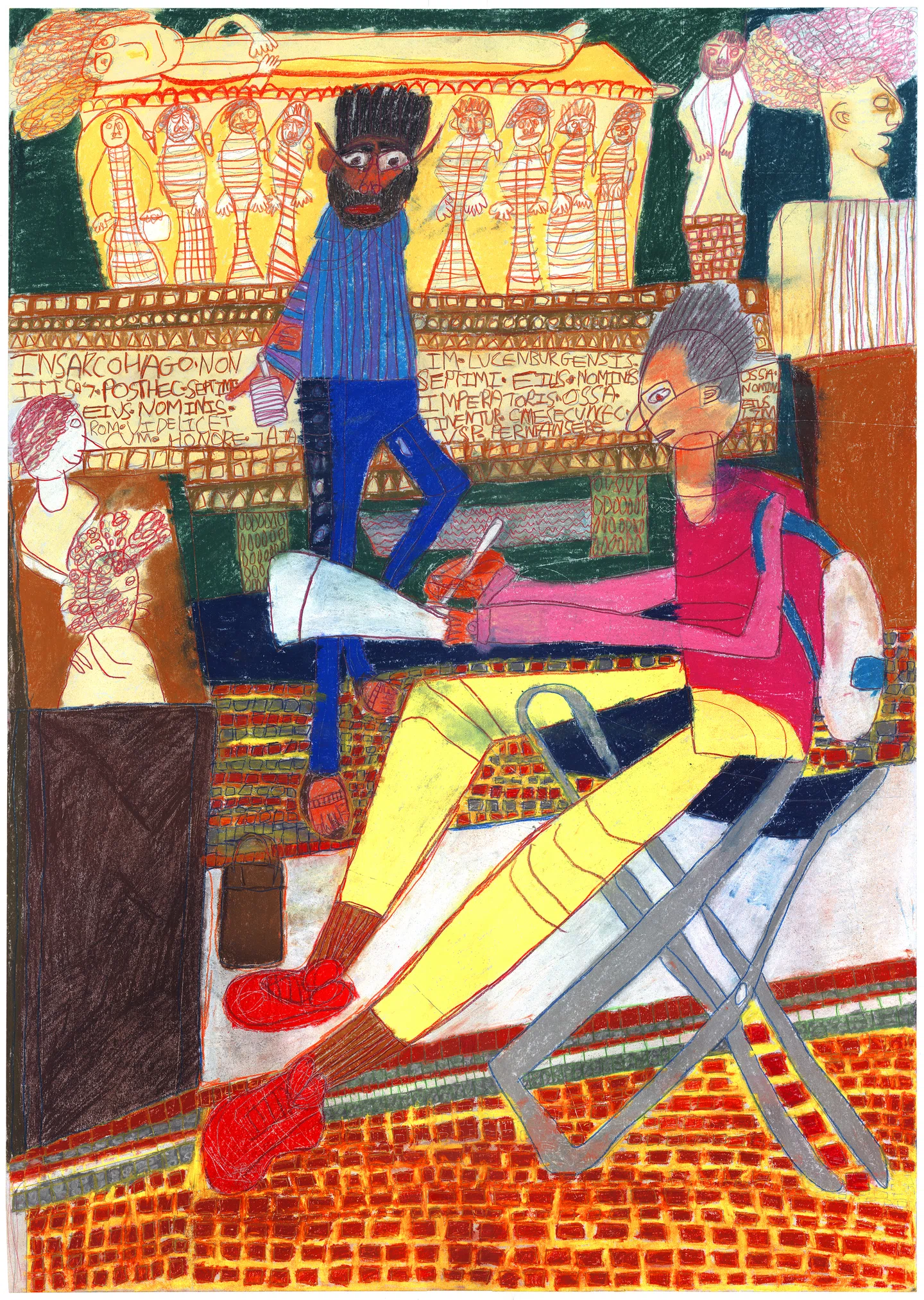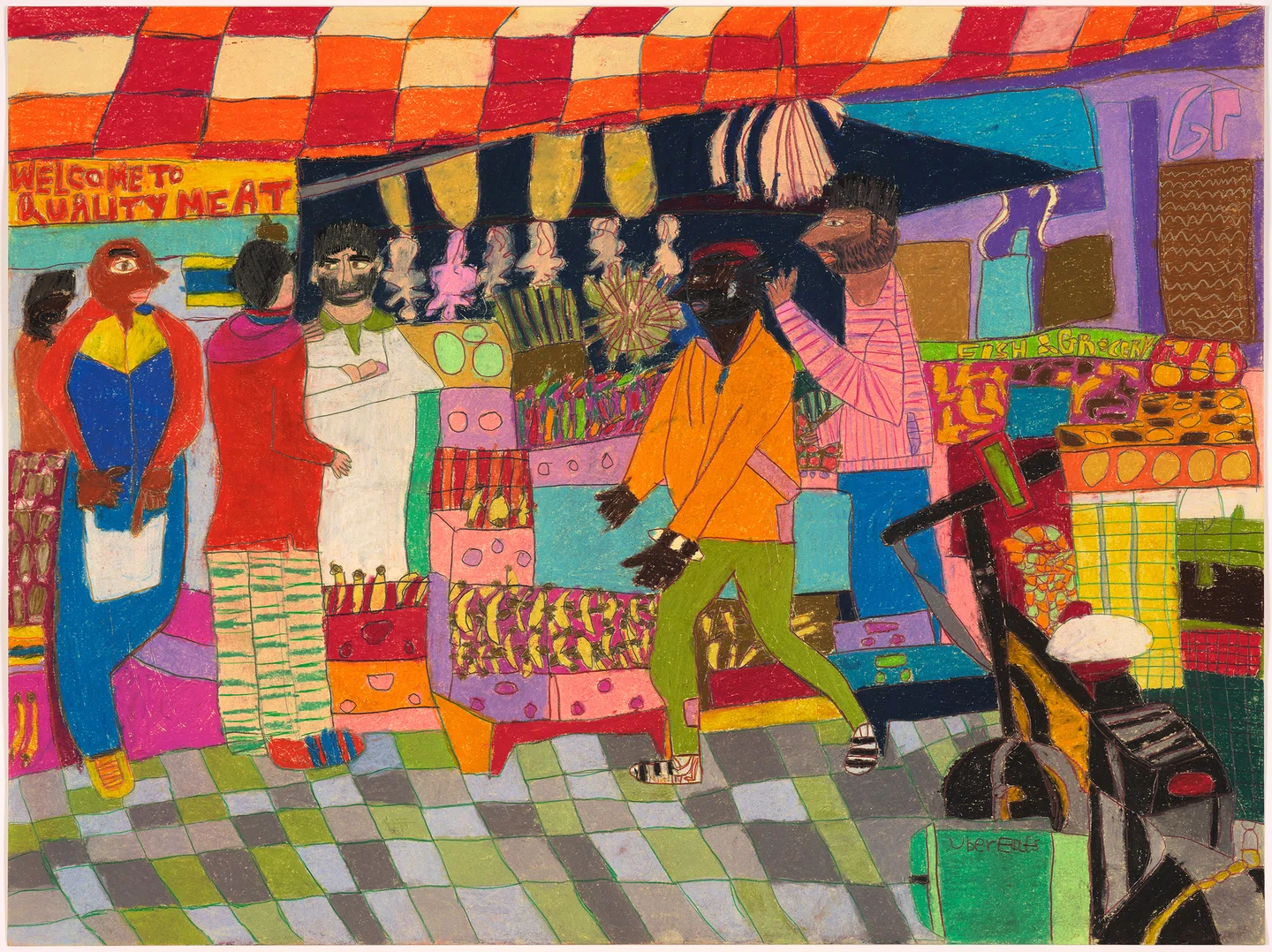 Для лондонского художника и дизайнера Джордана Муди будничные сцены — это не повод пройти мимо, а приглашение к рисунку. Работая в районе Пекхэм, он ежедневно фиксирует всё, что попадает в его поле зрения, — от уличной еды до музейных коридоров — и переводит это в насыщенные, ритмичные композиции, где цвет играет главную роль.