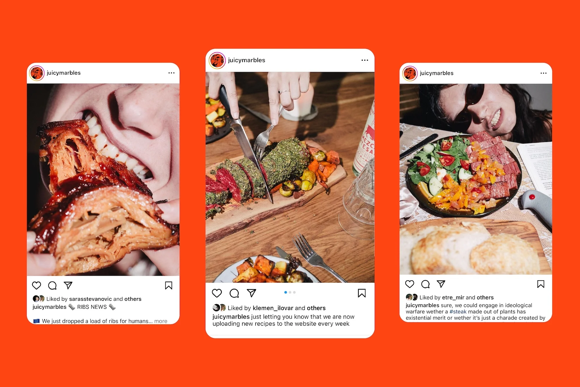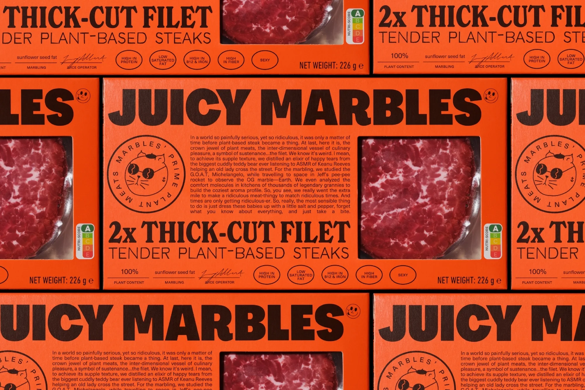 Juicy Marbles демонстрирует, что смелое стратегическое мышление и эмоционально цепкая визуальная система способны дать растительной еде новый, массовый и по-настоящему желанный имидж.