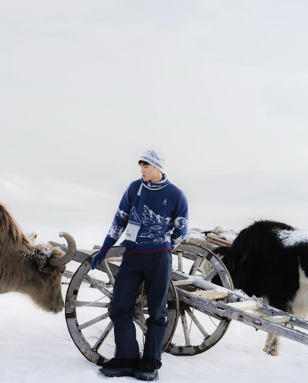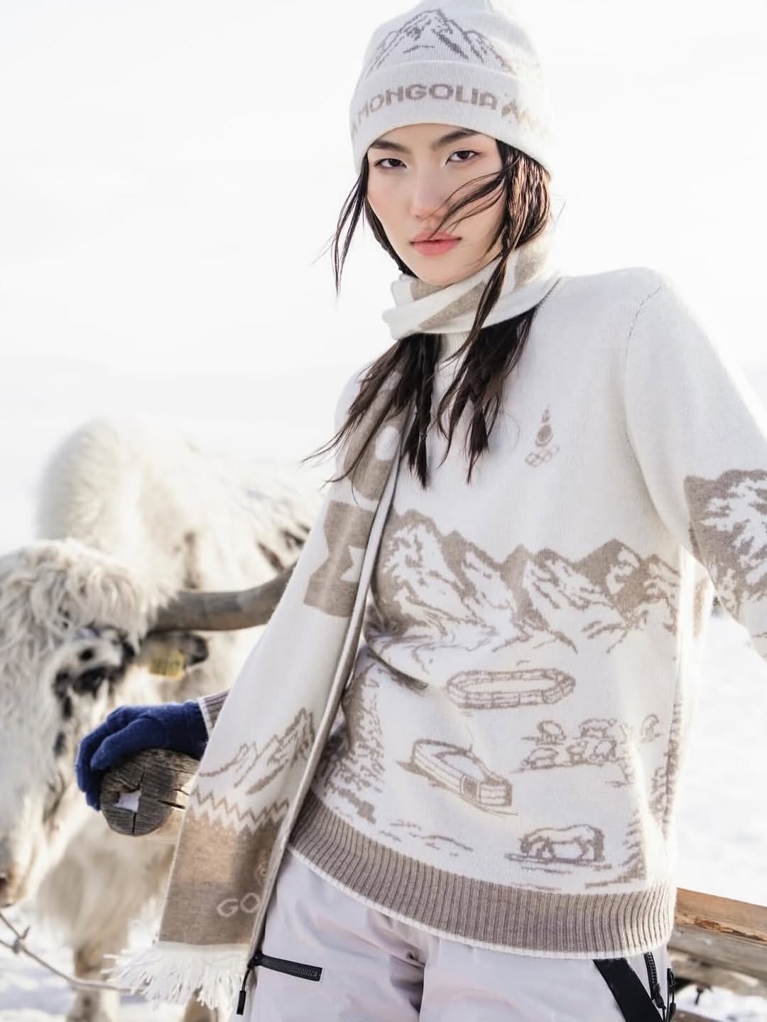 Ключевую роль в проекте играет материал. При пошиве использован знаменитый монгольский кашемир — локальный ресурс, давно ставший экспортным и культурным маркером страны. Его выбор подчеркивает не только климатическую целесообразность для зимних Игр, но и стратегию устойчивости: опора на собственные материалы и традиционные производственные цепочки здесь становится частью дизайнерского высказывания.