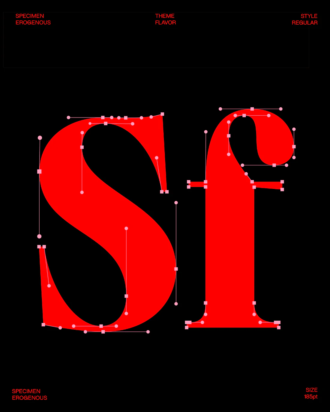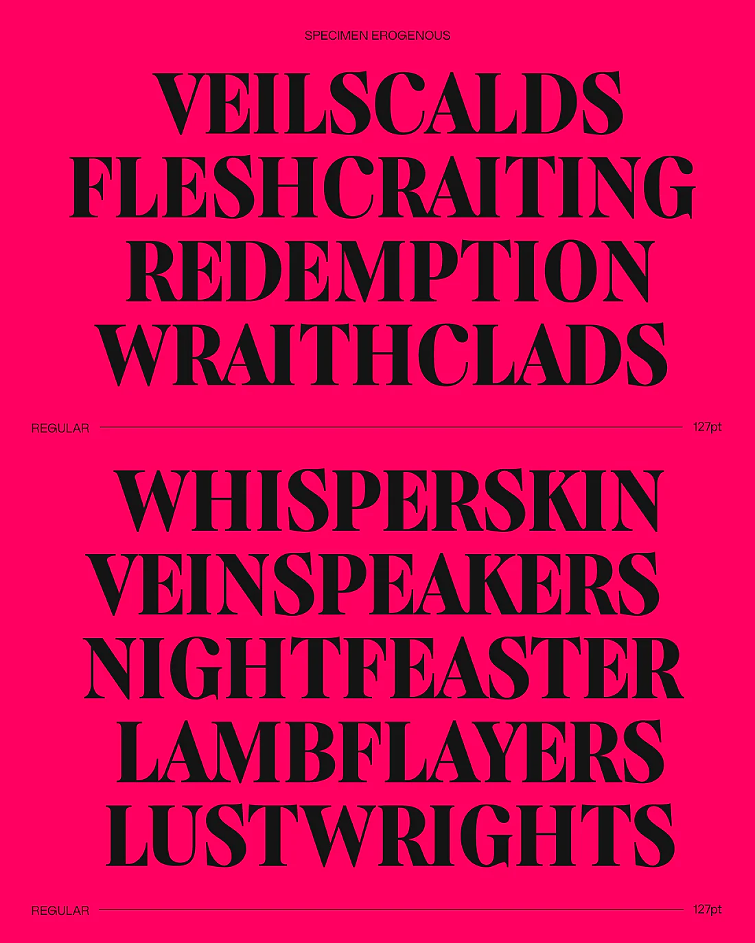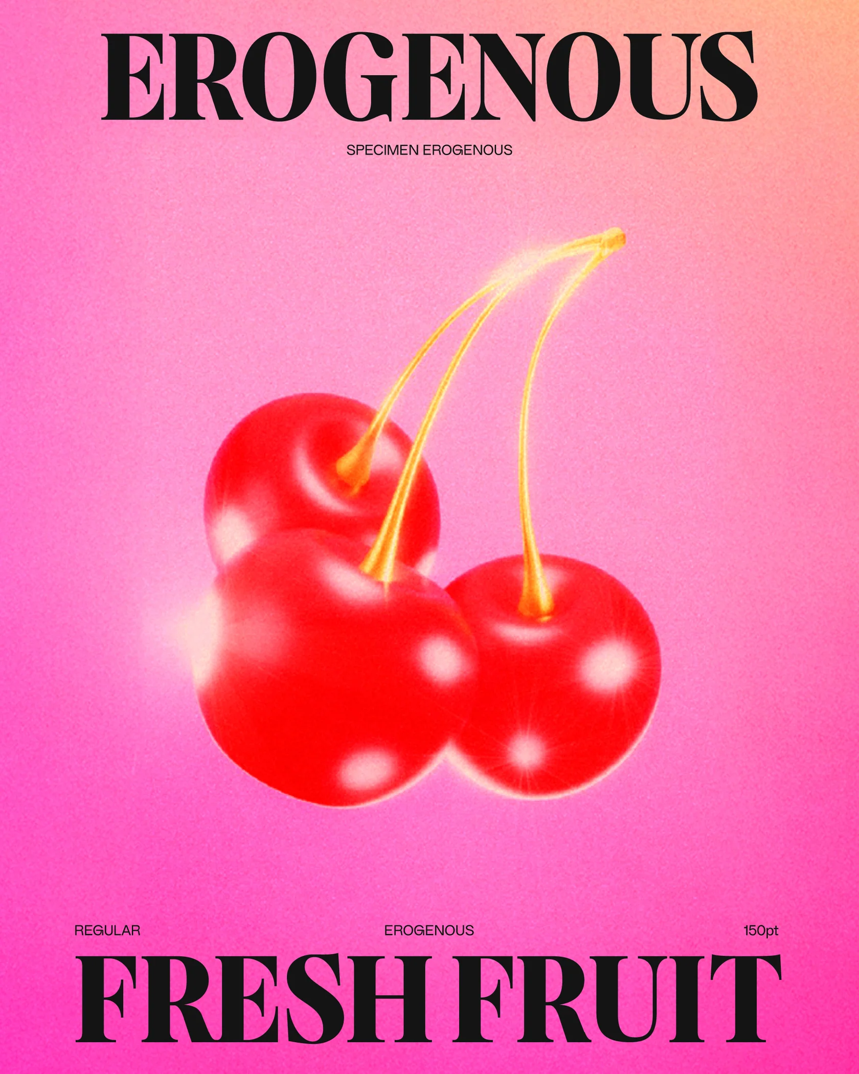 Возрождение шрифта с обложки книги Ингрид Бенгис «Битва в эрогенной зоне» (1972), посвященной исследованию сложностей женской идентичности, свободы и эмоциональной двойственности, – «Erogenous» представляет собой «типографический ответ на эти эмоциональные и социальные сложности, способ визуализации внутреннего напряжения и культурных вопросов посредством формы».