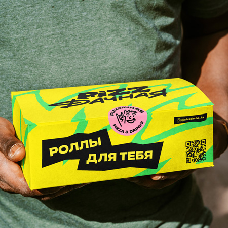 Яркий, динамичный и рок-н-ролльный брендинг службы доставки «Пиццдачная»